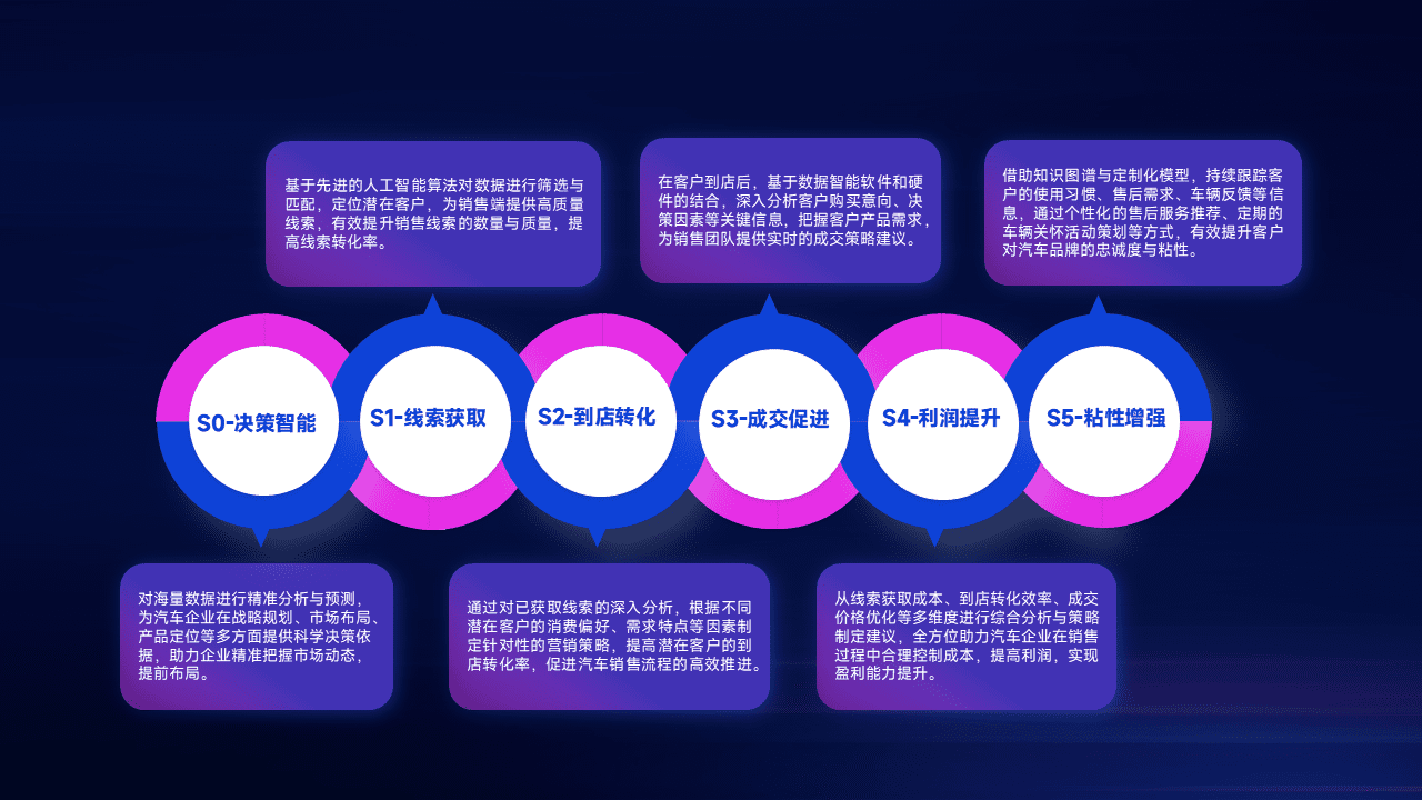 通过拓宽潜在客户来源、、、、优化线索分配并提高到店转化率,,,以增强销售效率。。同时,,,,利用线索数据不断优化分析模型,,,有效提升转化率,,,,扩大营销影响力。。